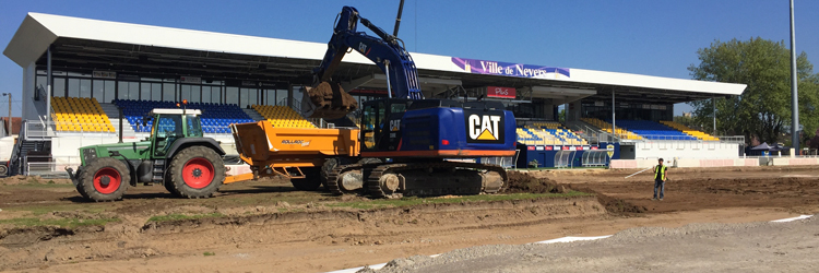 – Après une saison très difficile sur le plan de la tenue du gazon de son terrain de rugby du Pré Fleuri à Nevers, l’USON Nevers renouvelle sa confiance à la Sotren. En groupement avec la société Parcs et Sports, le club de Pro D2 fait le choix du procédé hybride Airfibre pour la réfection complète de son terrain d’honneur. Deux mois ont été nécessaires à la réalisation complète des travaux.